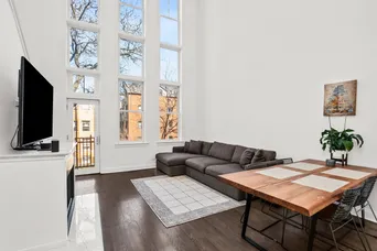 Dramatic Lincoln Park Duplex with Soaring Ceilings & Wall of Windows Experience stunning light and space in this bright 3-bedroom, 2-bath duplex-up in the heart of Lincoln Park. The home features 23-foot ceilings and a spectacular two-story wall of windows that flood the living area with natural light. Two parking spaces are included.The custom white kitchen offers 42" cabinetry, granite countertops, a classic white subway tile backsplash, and brand-new stainless steel appliances, along with space for a dining table.The spacious living and dining room.Upstairs, large lofted family room overlooks the living space and includes dual built-in workstations within a custom wall system, ideal for work-from-home or study. The primary suite features dual organized closets and a luxurious marble bath with double vanity, jet tub, and separate walk-in shower.Two additional bedrooms offer organized closets and share a full bath. highlights include hardwood floors, custom lighting, and in-unit washer/dryer.Perfectly located in Lincoln Park, just steps from restaurants, parks, shopping, and everything the neighborhood has to offer.--